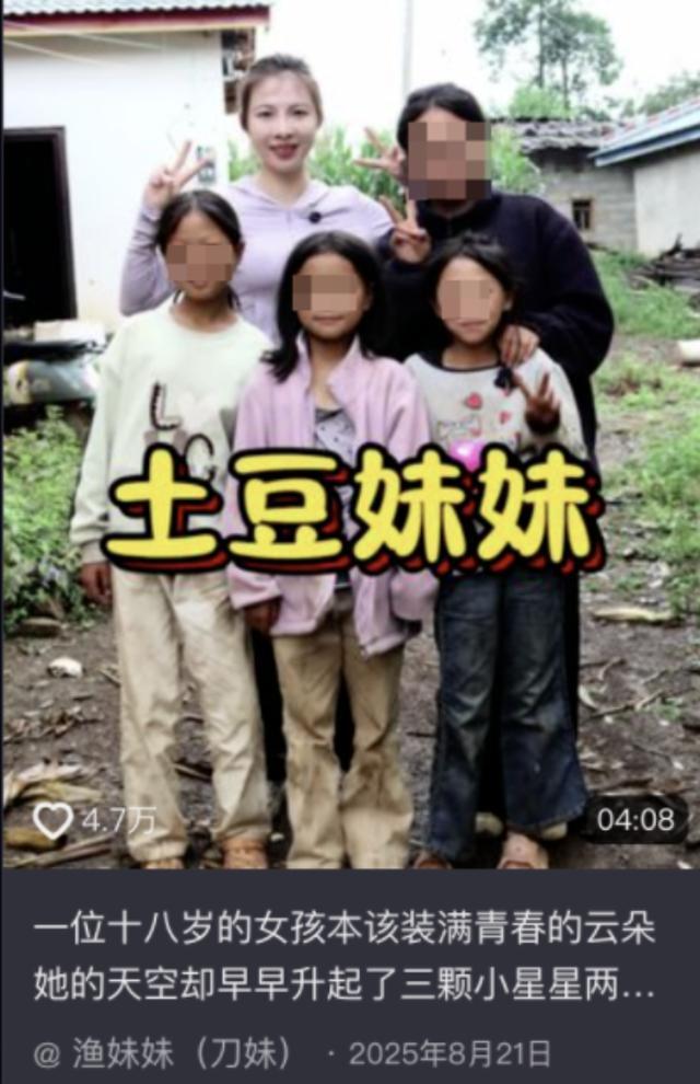 同年8月,网红“渔妹妹”又偶遇阿吉,故事的版本又变成了父住母去世,18岁的阿吉扛起了养家重担;