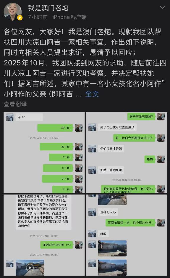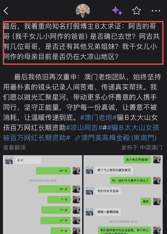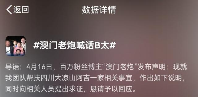 风波未平之际,另一个也曾伸出援手的网红——"澳门老炮"站出来发声。