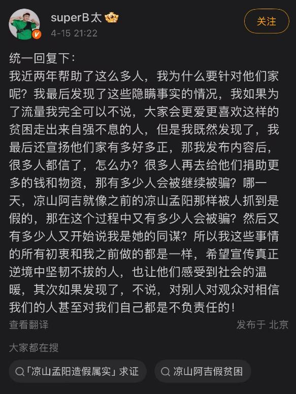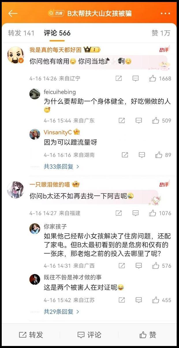 就像网友所说:真正需要帮助的人根本接触不到网络,冒头的多是这种消耗善意的伪装者,这种毫无底线的欺骗不止伤了B太等博主的心,也挡住了真正的弱者的求生路。